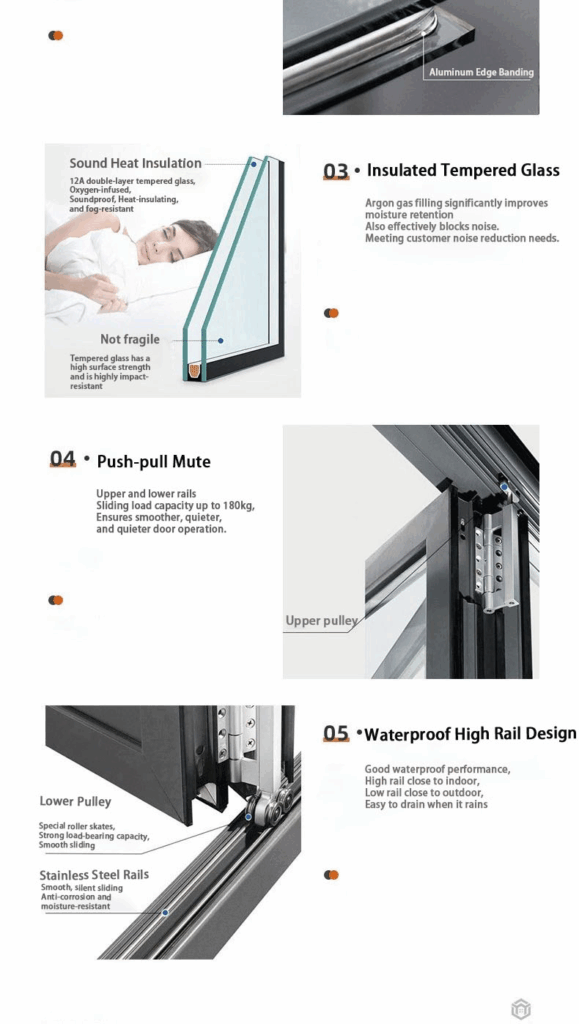 - Security: Ensure the system comes with high-security, multi-point locking mechanisms that are resilient against forced entry.